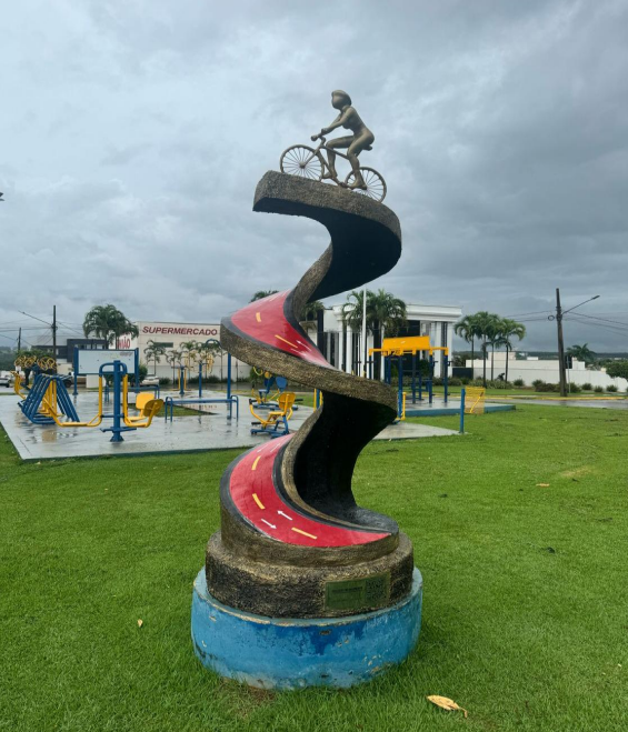 Ciclovia em Movimento Autor: Wilter Carlos Ano: 2023 A obra “Ciclovia em Movimento” está localizada na rotatória da avenida Blumenaunorte em frente à Igreja Comunidade das Nações